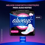 Durma sem preocupações e descanse agradavelmente com os novos absorventes Always Noites Tranquilas com cobertura Suave como o algodão*, desenhado para dormir a noite toda. Agora com melhor conforto e proteção para suas noites. Always Noites Tranquilas Suave tem melhor ajuste a calcinha e uma estrutura fina para melhor conforto.