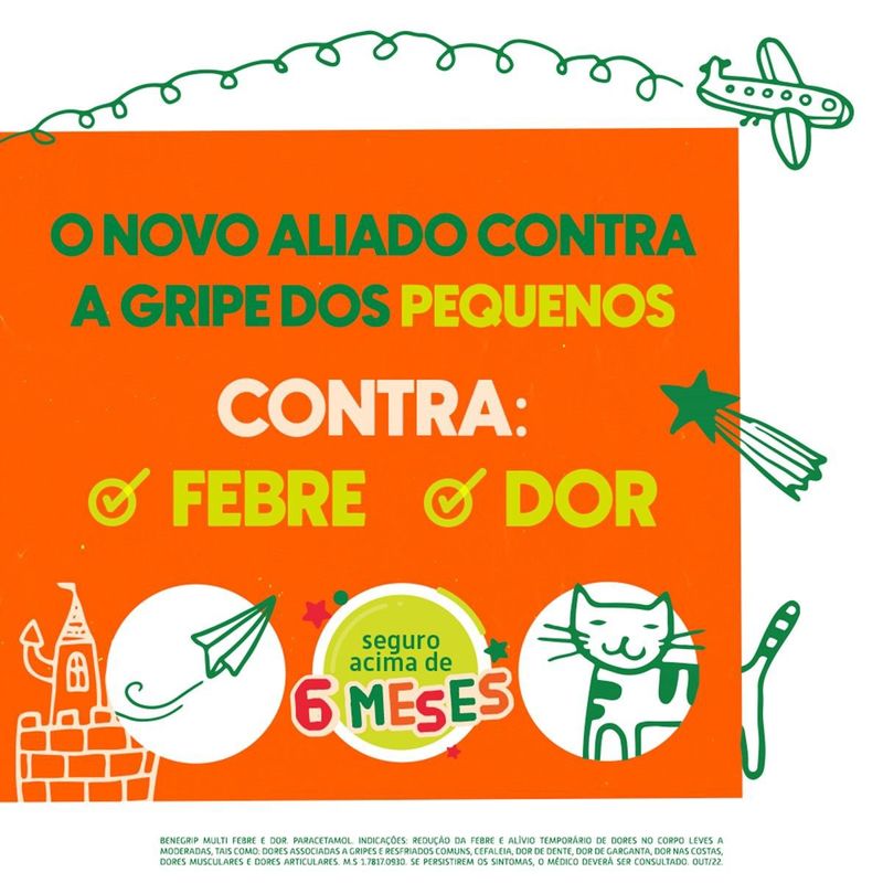 Benegrip Multi é o antigripal líquido desenvolvido especialmente para as crianças a partir de 2 anos, com uma fórmula TUDO EM UM, com 3 ativos para combater os sintomas da gripe.