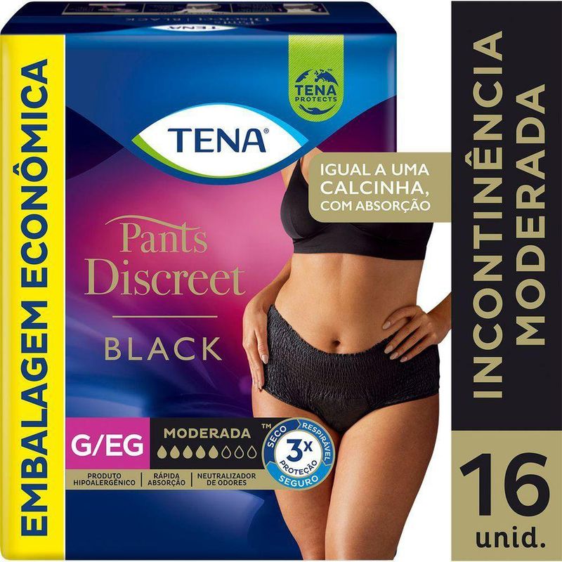 SaúdeAdultoCalcinha Descartável Tena Pants Discreet Preta G/EG 16 Unidades