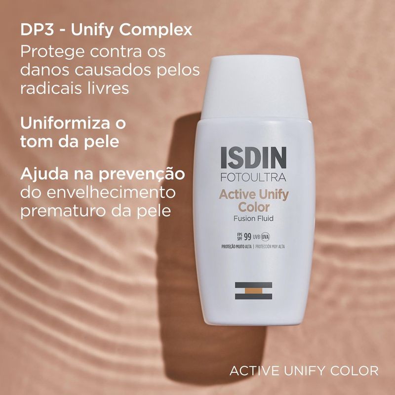 FotoUltra ISDIN contém DP3-Unify Complex que ajuda a regular a produção de melanina. Protege até duas vezes mais que um protetor solar com FPS 50+ contra os raios UVA. Possui textura fluida que é facilmente absorvida pela pele.Ajuda clarear e uniformizar o tom de pele e regular a produção de melanina, ajudando a reduzir gradualmente as marcas escurecidas da pele causadas pelo sol.