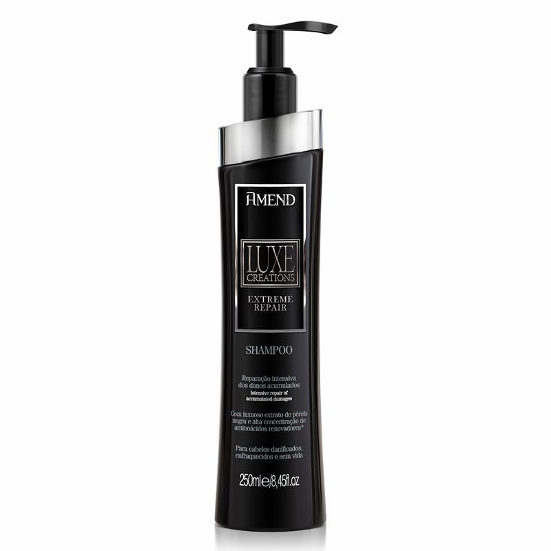 Condicionador Amend Luxe Creations Extreme Repair é elaborado com alta concentração de ativos que reparam intensamente os danos acumulados causados pelo estresse mecânico, químico, térmico e ambiental. Combatem os sinais de envelhecimento capilar (cabelos opacos, fracos e desidratados), evitam o desbotamento da cor e recuperam rapidamente os fios mantendo-os hidratados, fortes, brilhantes e com a cutícula selada.