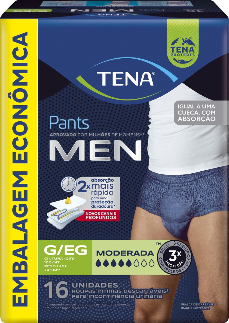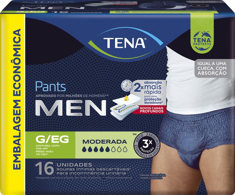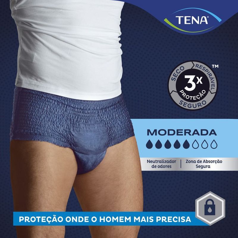 TENA Pants Confort uma roupa íntima descartável e unissex para usuário com mobilidade e perdas de urina moderada/severa. Produto de fácil uso, discrição, segurança e rápida absorção. O usuário seco e confortável, reduz significativamente o risco de irritações ou infecções cutâneas. Ajuste perfeito ao corpo.