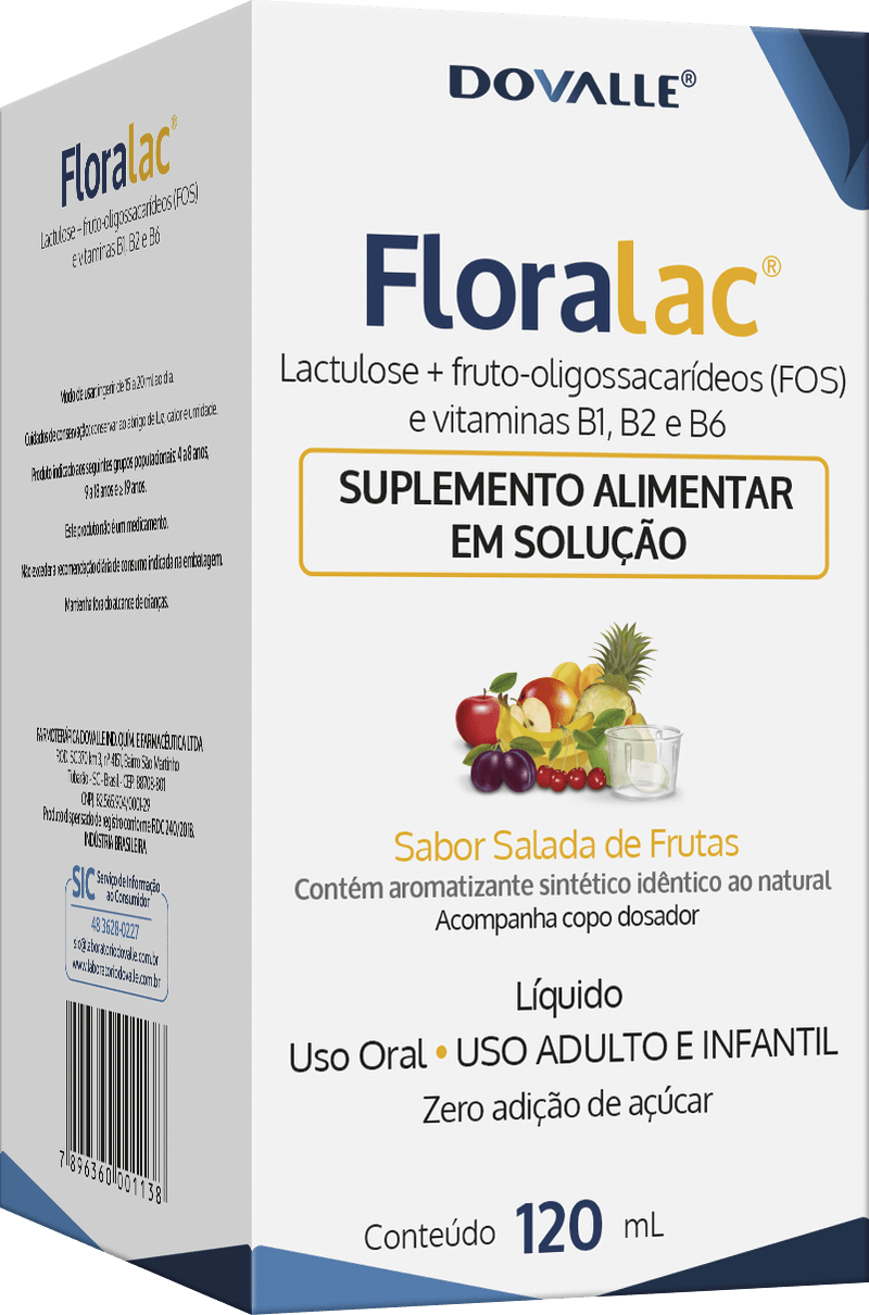 Floralac pode ser utilizado em casos de constipação auxiliando o trânsito intestinal e promovendo o equilíbrio da flora.