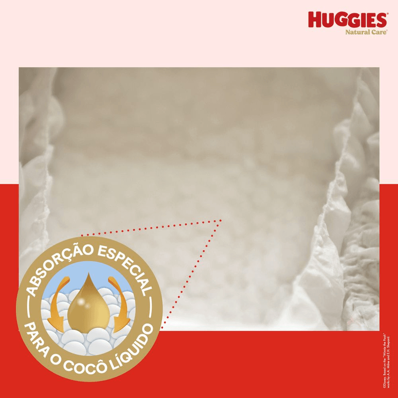 A fralda possui cobertura respirável e um toque macio e delicado na pele (por dentro e por fora), além de orelhas macias.