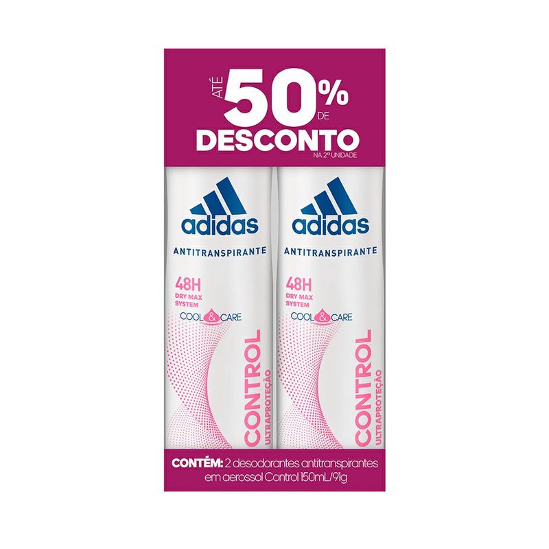 Kit Desodorante Aerossol Adidas Feminino Control 2 Unidades 150ml Cada