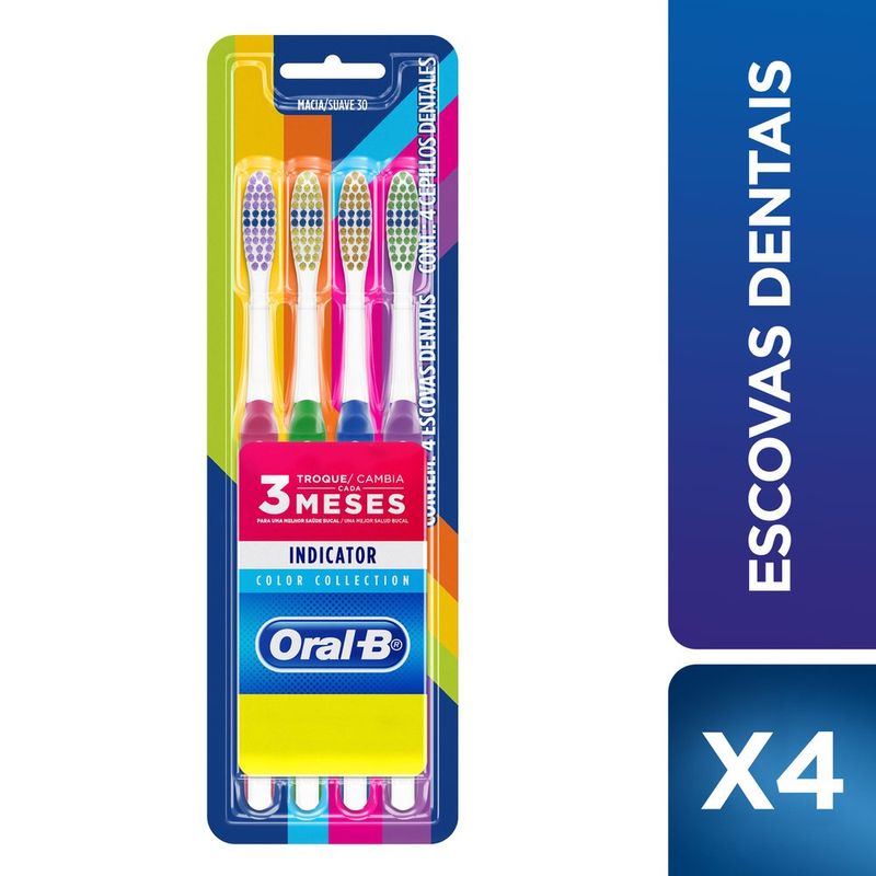 Com o pack familia Oral-B Indicator Colors, a troca da escova a cada 3 meses será mais fácil. Ela possui uma tecnologia de cerdas indicadoras que indicam qual é hora certa que você deve trocar. Além disso, as escovas possuem cerdas macias que ajudarão com uma melhor limpeza. Este pack tem escovas coloridas e diferentes.