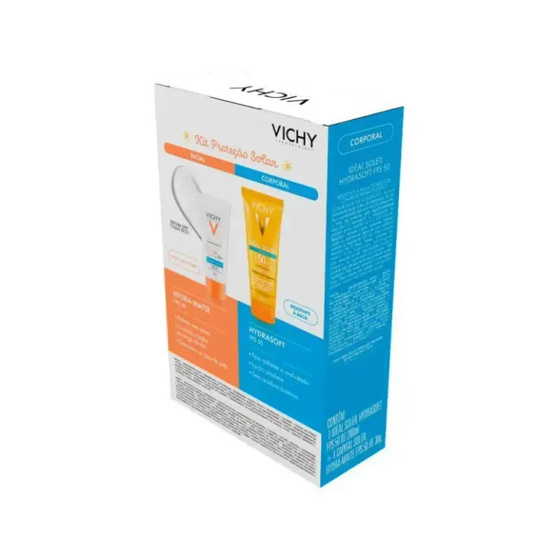 Kit Vichy Protetor Solar Coporal Hydrasoft Fps 50 200ml + Protetor Solar Facial Hydramatte Sem Cor Fps 50 30g