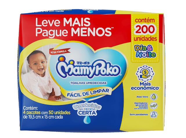 Toalhas umedecidas MamyPoko Dia&Noite são a melhor escolha para a higiene do seu bebê,já que elas são mais flexíveis e não rasgam com facilidade.