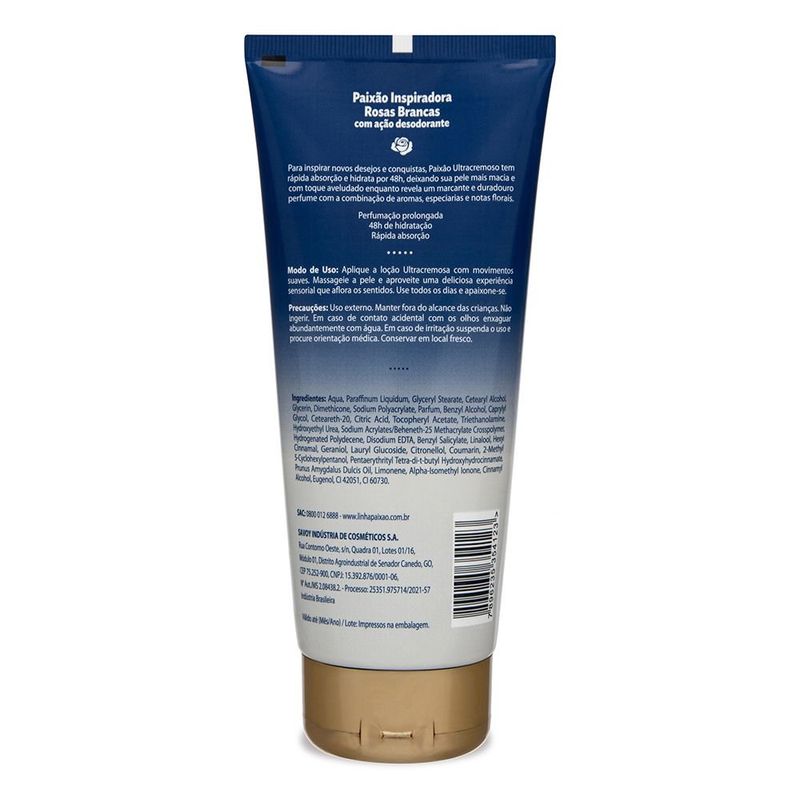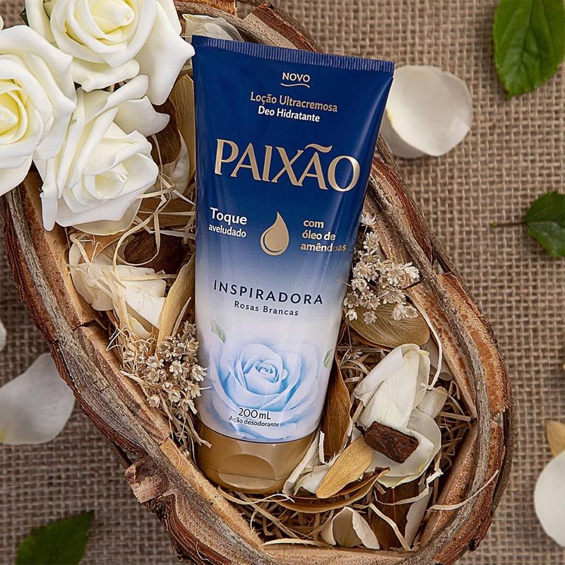 Loção Hidratante Ultracremosa Paixão Inspiradora Rosas Brancas com ação desodorante. A Loção Ultracremosa hidrata a pele por 48 horas e possui rápida absorção, deixando a pele mais macia e com toque aveludado.