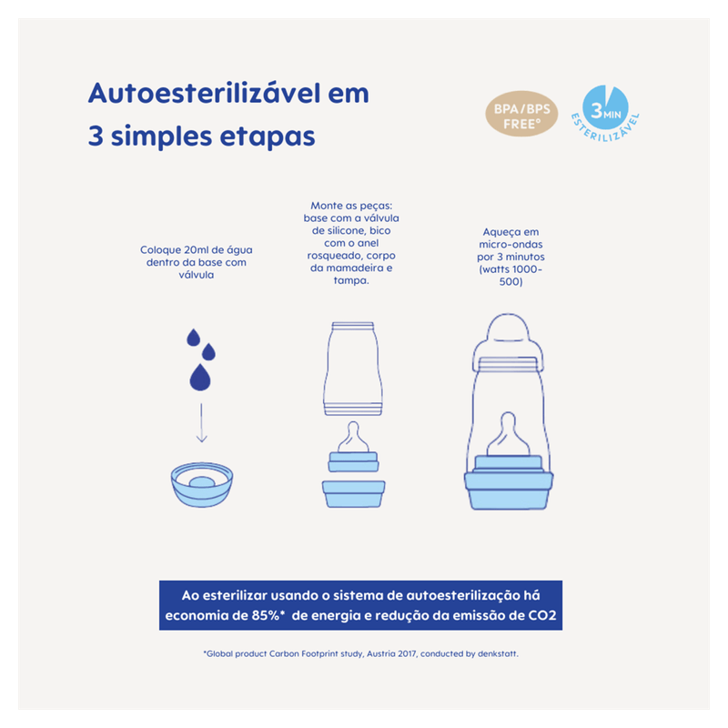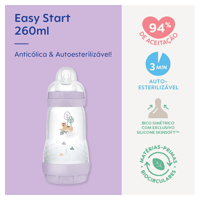 A Mamadeira MAM Easy Start possui o melhor custo-benefício do mercado, é uma mamadeira feita com materiais de qualidade e de uma marca que é referência no mercado.Tampa protetora antivazamento que mantém o bico protegido,e também graduada ,serve para medir pequenos volumes.