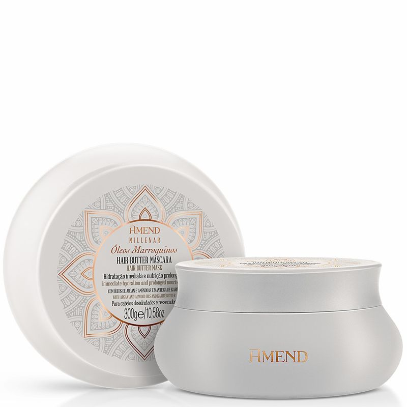Hair Butter Máscara Amend Millenar Óleos Marroquinos inspirados nos ingredientes usados há milênios no Marrocos para os cuidados da beleza, desenvolvemos uma manteiga capilar com alto poder de hidratação e nutrição, que proporciona maciez, elasticidade e toque sedoso aos fios ásperos e ressecados, através da rica combinação dos óleos marroquinos, manteiga extraída do fruto da árvore do Karité e potente ativo protetor e disciplinante extraído do Tamarindo.