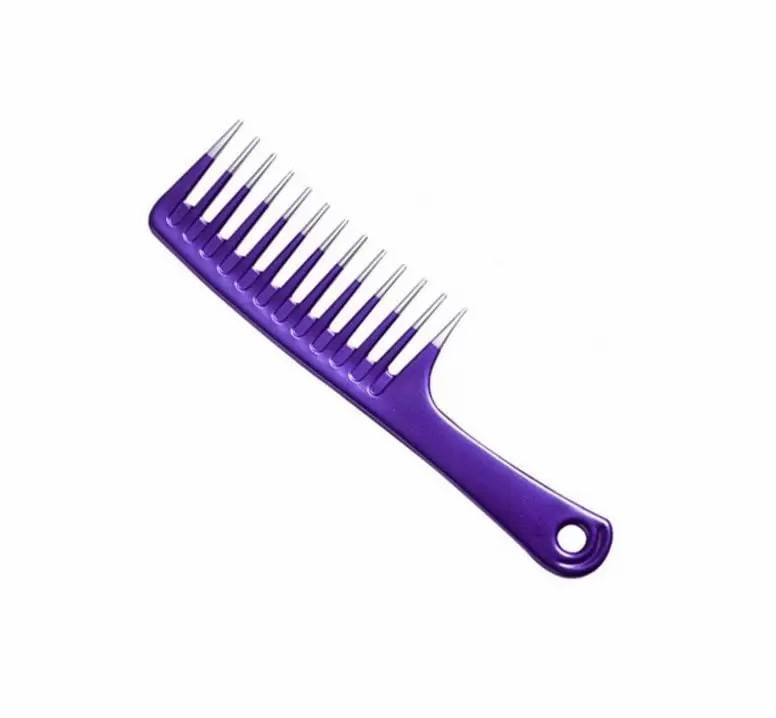 Pente plástico, tamanho grande, com dentes metalizados, ideal para o controle de cabelos arrepiados. Ideal para pentear e desembaraçar os fios sem agredí-los. Material de fácil higienização. Diversas cores.