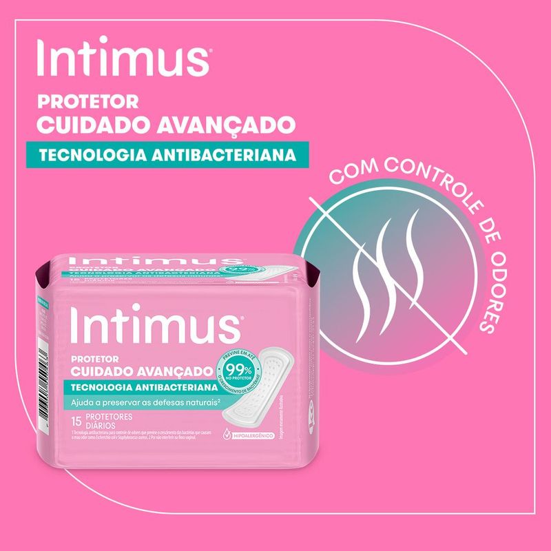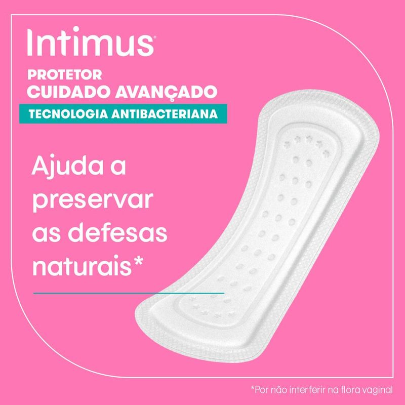 Intimus® é a marca completa no mercado de cuidados femininos, garantindo a proteção e o conforto que você precisa todos os dias. O Protetor Diário Intimus® Days com tecnologia antibacteriana ajuda a preservar em até 99% o crescimento de bacterias* no protetor ajudando a preservar as defesas naturais da zona íntima.