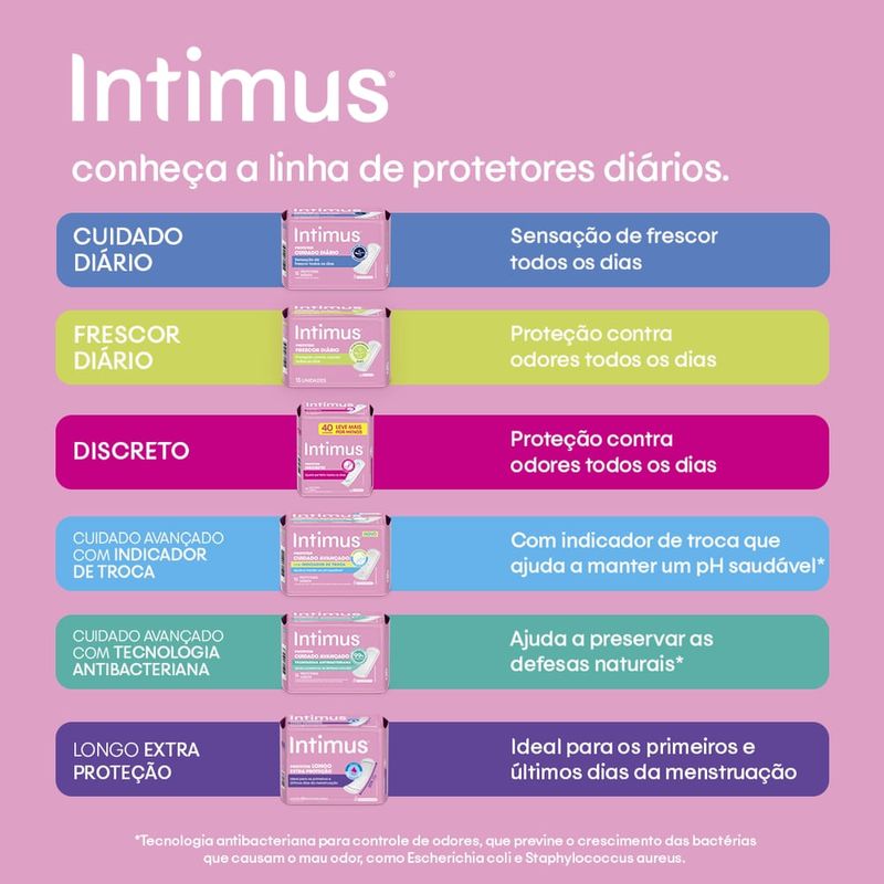 Com cobertura respirável, que permite a circulação do ar, e protege sem abafar. Além disso, possui toque delicado com a pele e contém perfume e tecnologia controle de odor. Com ele você se sente fresca e seca o dia todo, todos os dias - inclusive no começo e final da menstruação.