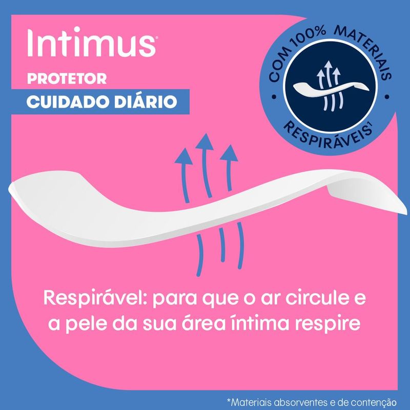 O Protetor Diário Intimus Days Flexível te ajuda a se sentir limpa e fresca todos os dias. Se comparado com protetores diários não respiráveis e que não permitem a passagem do ar, o protetor é responsável por conferir ótima respirabilidade para a região íntima durante os dias fora do período menstrual ou ao final dele.