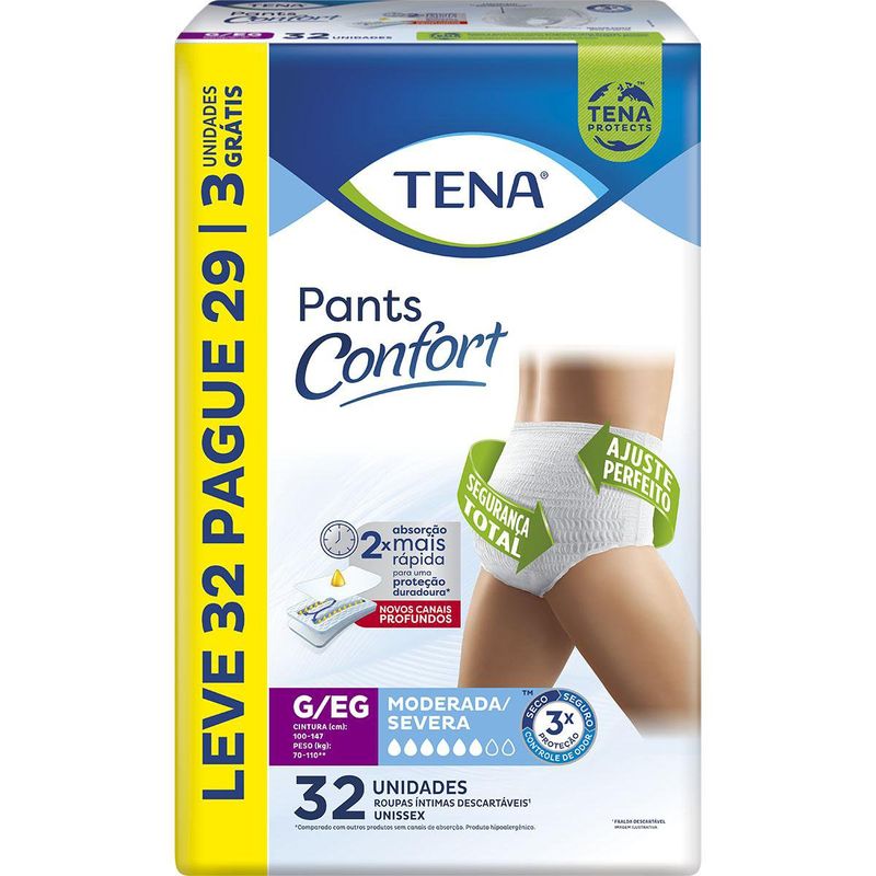 SaúdeAdultoRoupa Íntima Tena Pants Confort G/EG Leve 32 Pague 29 Unidades