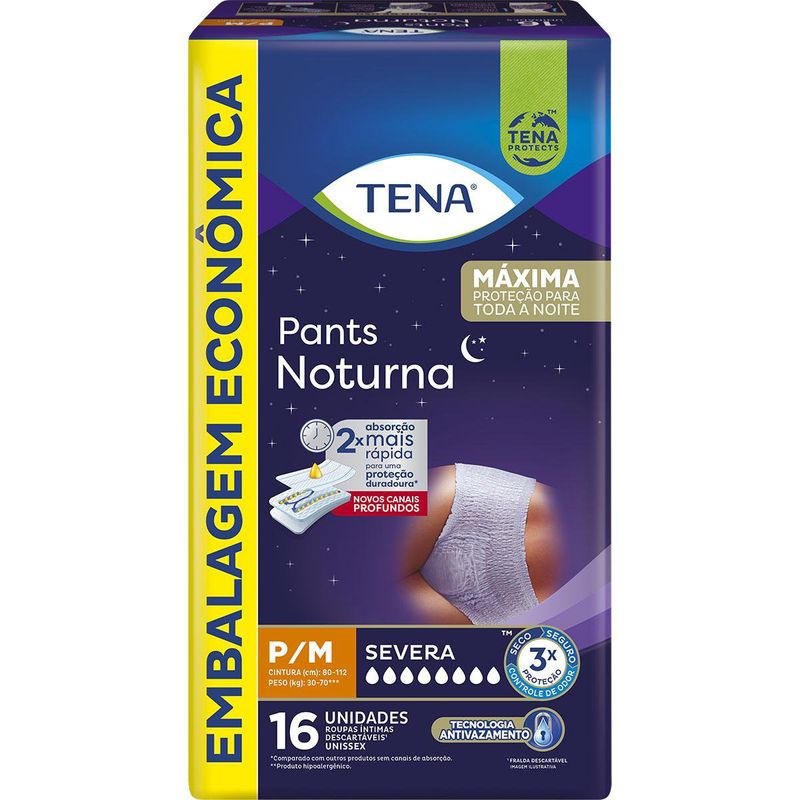 Roupa Íntima Descartável TENA Pants Noturna é uma roupa íntima descartável e unissex de rápida absorção, proporcionando ao usuário máxima proteção durante toda a noite. É indicado para pessoas com mobilidade e com perdas de urina severa. Além disso, é muito confortável (elásticos suaves em volta da cintura permitindo uma adaptação perfeita ao corpo), segura e de fácil uso, como uma roupa interior (calcinha ou cueca). A excepcional segurança deve-se à sua tecnologia antivazamento, que tem um núcleo de alta absorção - posicionado para também dar segurança na posição deitada, que absorve rapidamente grandes quantidades de urina mantendo-a longe da pele, assim o usuário permanece seco , reduzindo significativamente o risco de irritações ou infecções cutâneas.