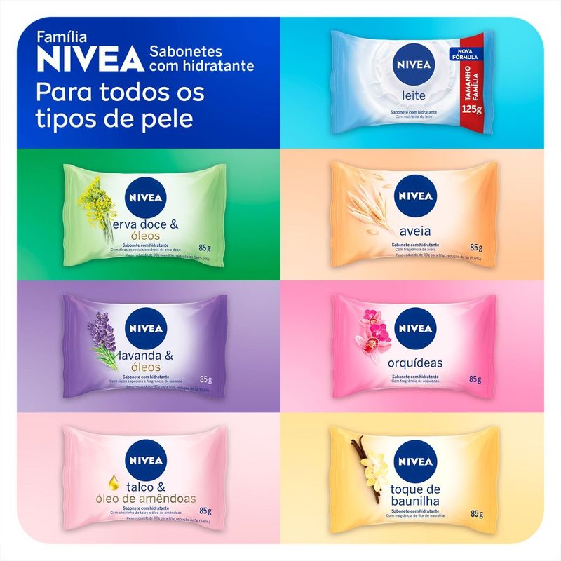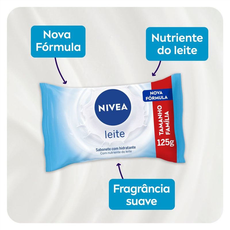 O sabonete NIVEA LEITE que possui espuma cremosa e uma suave fragrância para o seu banho. Sabonete com hidratante e proteínas do leite que limpa e cuida gentilmente da sua pele enquanto a fragrância suave de leite deixa a pele delicadamente perfumada, proporcionando uma sensação de pele macia e hidratada mesmo após o banho.