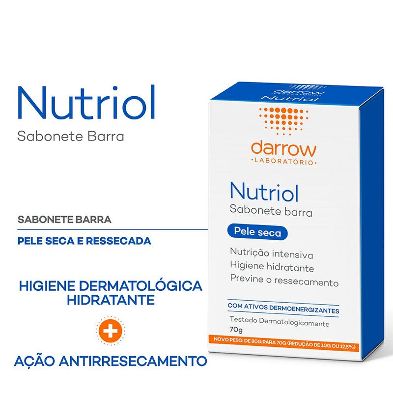 O Sabonete em Barra Nutriol Pele Seca de Darrow foi desenvolvido com ação antiressecamento e é indicado para todos os tipos de pele, principalmente as peles secas e ressecadas no rosto ou no corpo. Suas funções: Nutre intensamente, higiene hidratante, previne o ressecamento e restaura o conforto e maciez da pele.