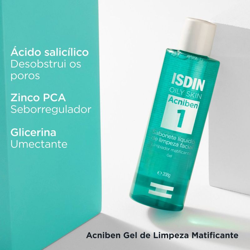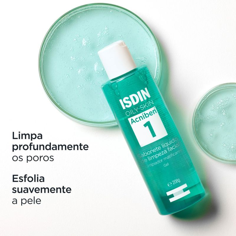 O Acniben 1 é um sabonete líquido da Isdin, desenvolvido especialmente para peles oleosas e acneicas. Indicado tanto para rosto quanto para o corpo, seu uso limpa a pele profundamente, sem ressecar, desobstrui os poros, remove impurezas e reduz o excesso de oleosidade, deixando a pele fresca e matificada.