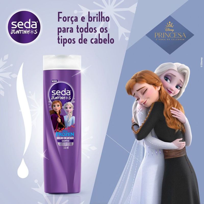 O Shampoo Seda Juntinhos Frozen dá mais força e brilho aos fios, em um único produto que lava e condiciona os fios, além de deixá-los com um cheirinho delicioso!