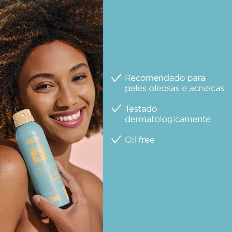 O Acniben + é um spray corporal da Isdin, desenvolvido especialmente para peles oleosas e acneicas. Ideal para áreas de difícil alcance, como costas e peito, seu uso reduz a acne do corpo e renova as células da superfície da pele através da esfoliação.